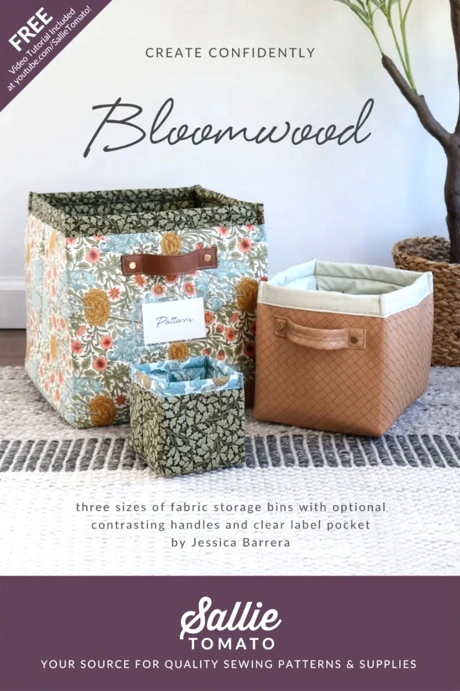 Three sizes of fabric storage bins with optional contrasting handles by Jessica Barrera.