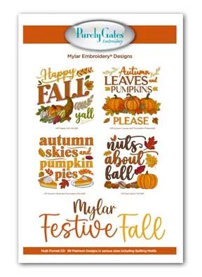 Fall in love with embroidery all over again! Mylar Festive Fall is a collection bursting with sparkle, color, and cozy autumn charm. With 89 dazzling designs, you’ll be ready to stitch up the season in style.